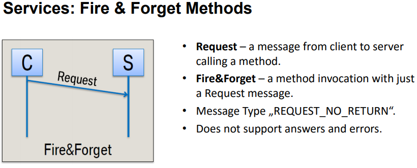 규격에서 제안 하는 SOME/IP 통신 방법은 Request/Response(Method), Fire&Forget, Events, Field 총 4가지 이다.